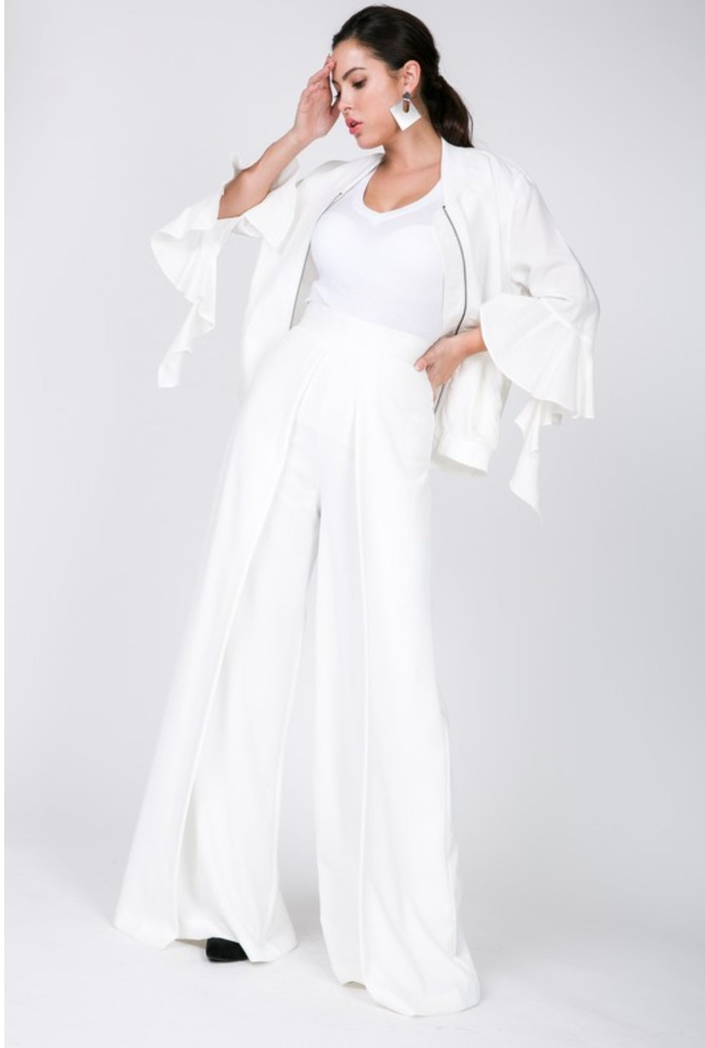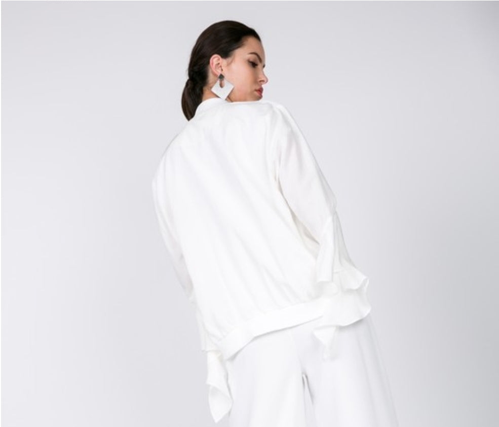 Cascade Ruffle Sleeve Bomber Jacket