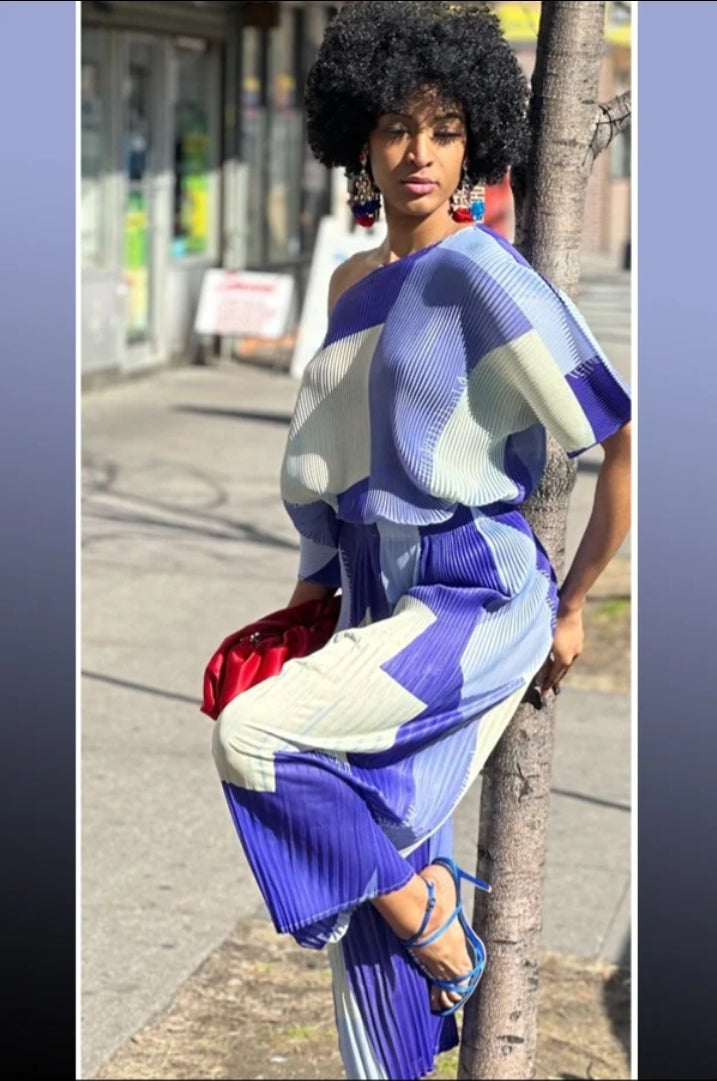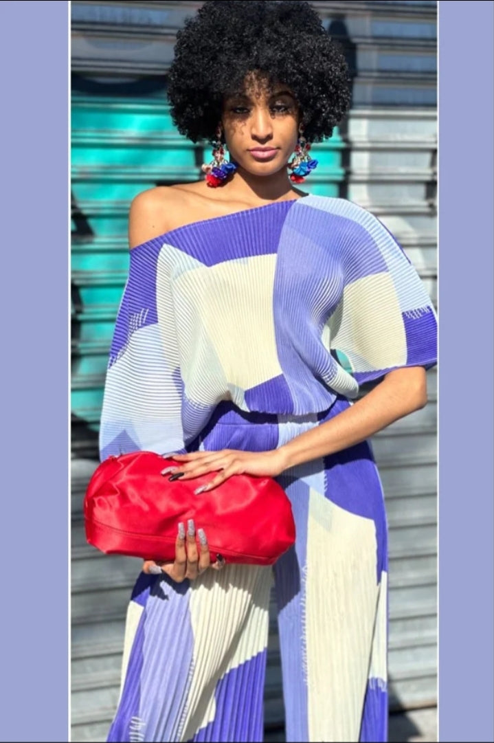 Accordion, Short Sleeve, Flair Leg, Pants Set
