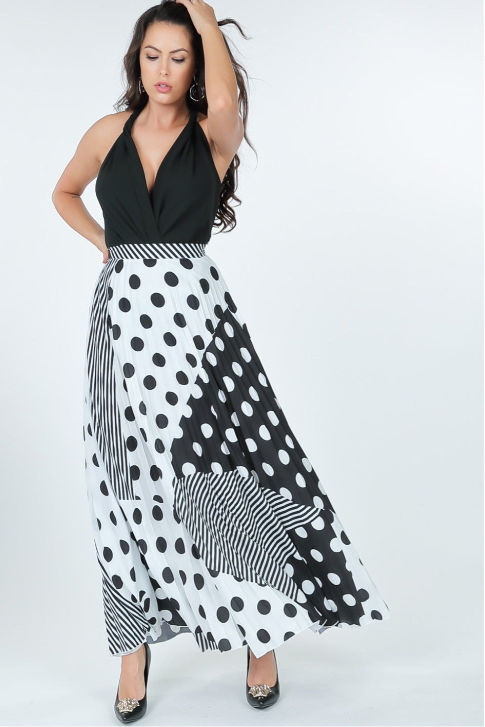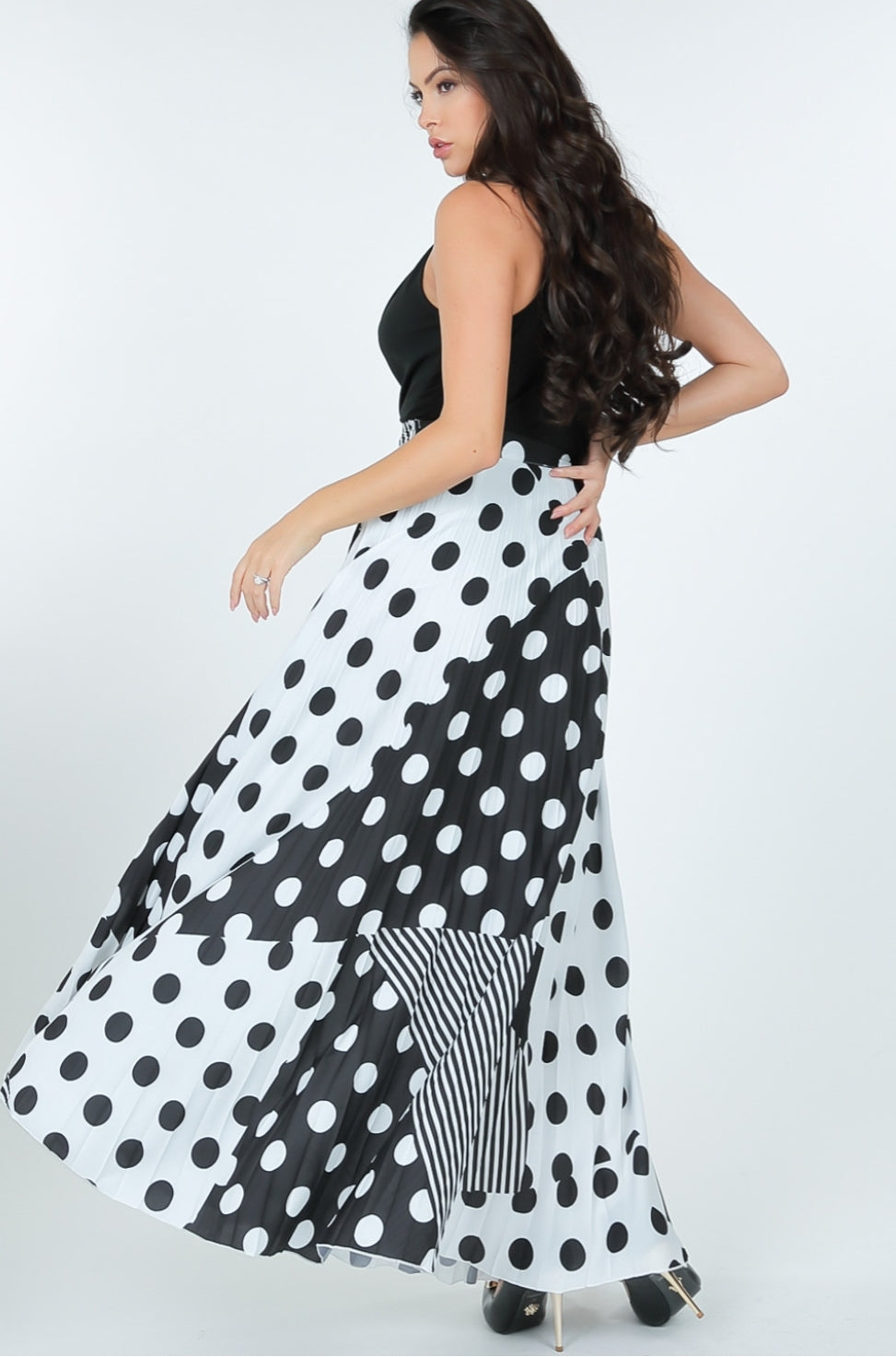 Polka Dot And Stripes, Mixed Patterns Pleated Skirt.