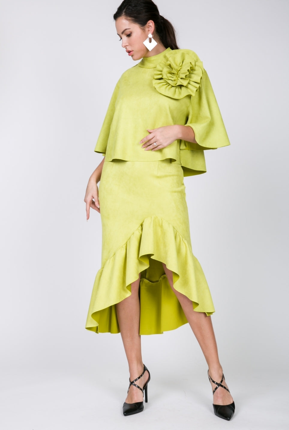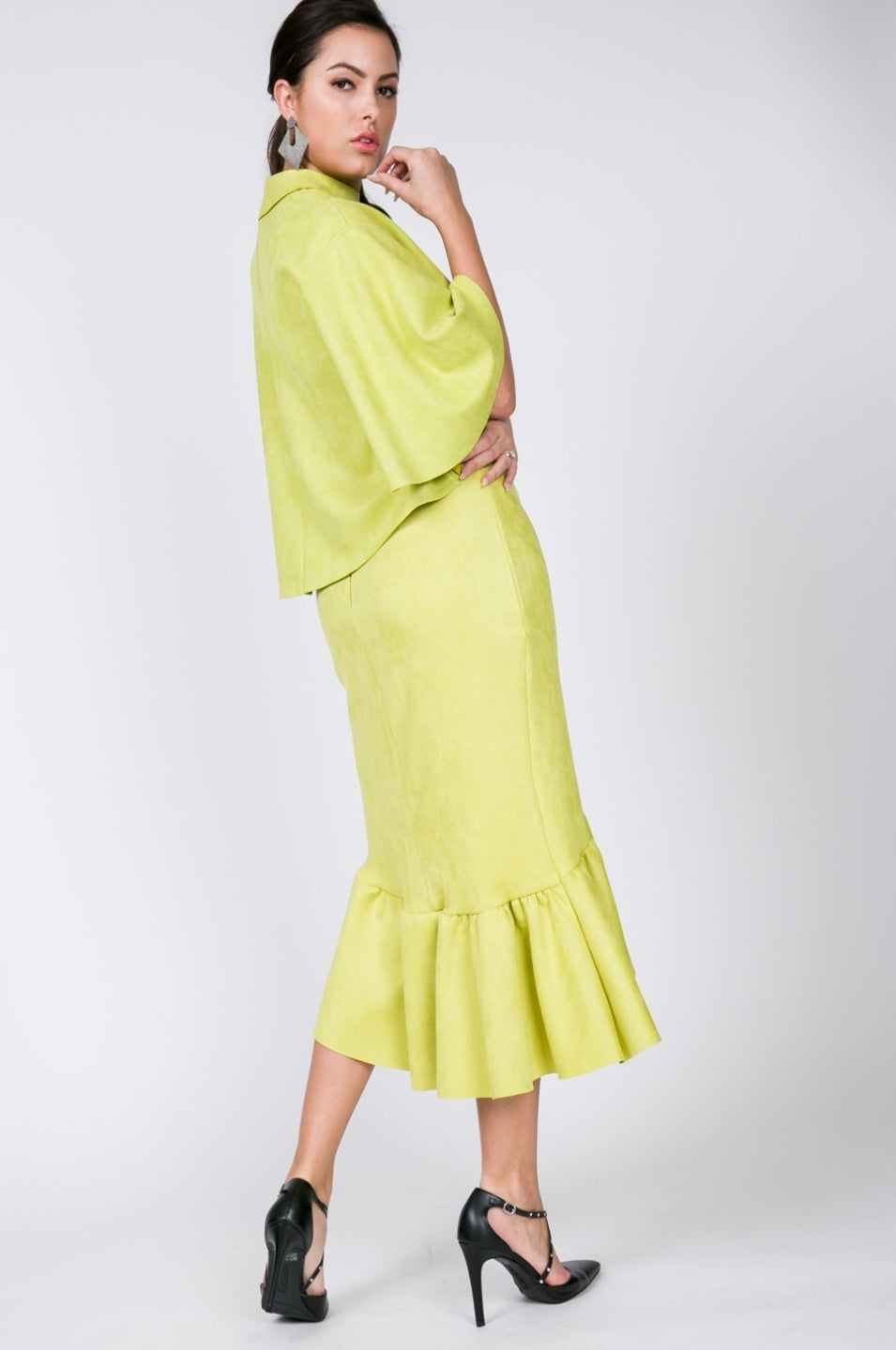 High-Low, Ruffled Bottom, Faux Suede Skirt